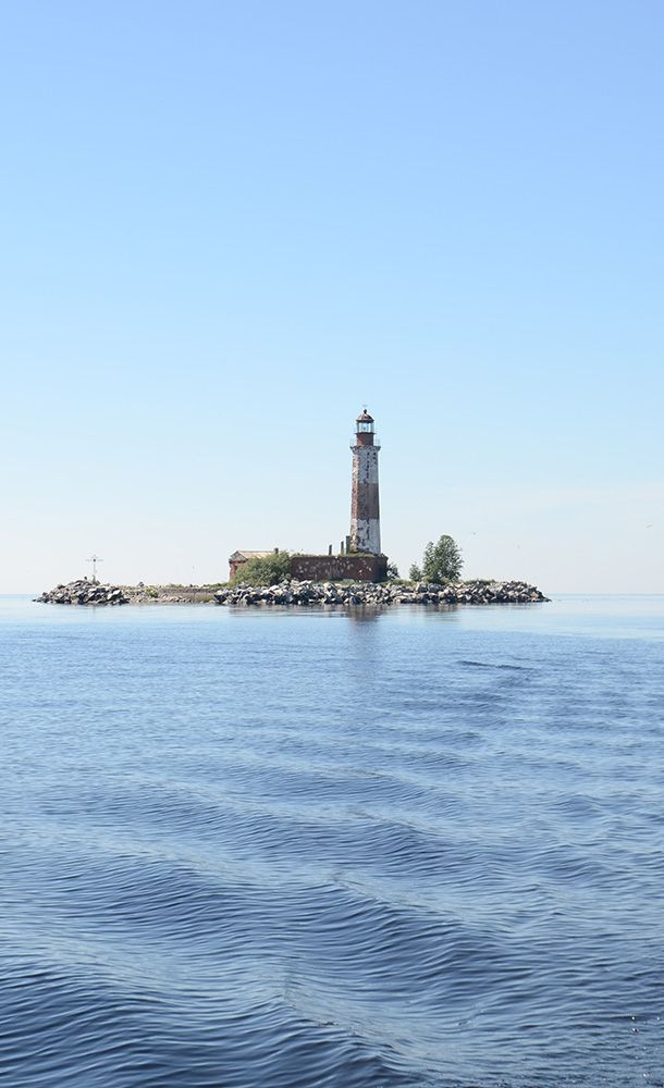 Остров небольшой, в виде подковы 120 на 70 метров, его украшает старый маяк и домик смотрителя, часто можно увидеть нерп, в конце июня, начале июля гнездятся чайки